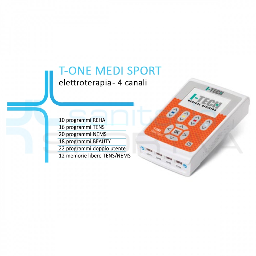 Il grande vantaggio di T-One Medi Sport è che, grazie ai quattro canali, puoi trattare in una singola seduta gambe, addome e schiena, ottimizzando i tempi e aumentando l’efficacia del trattamento.