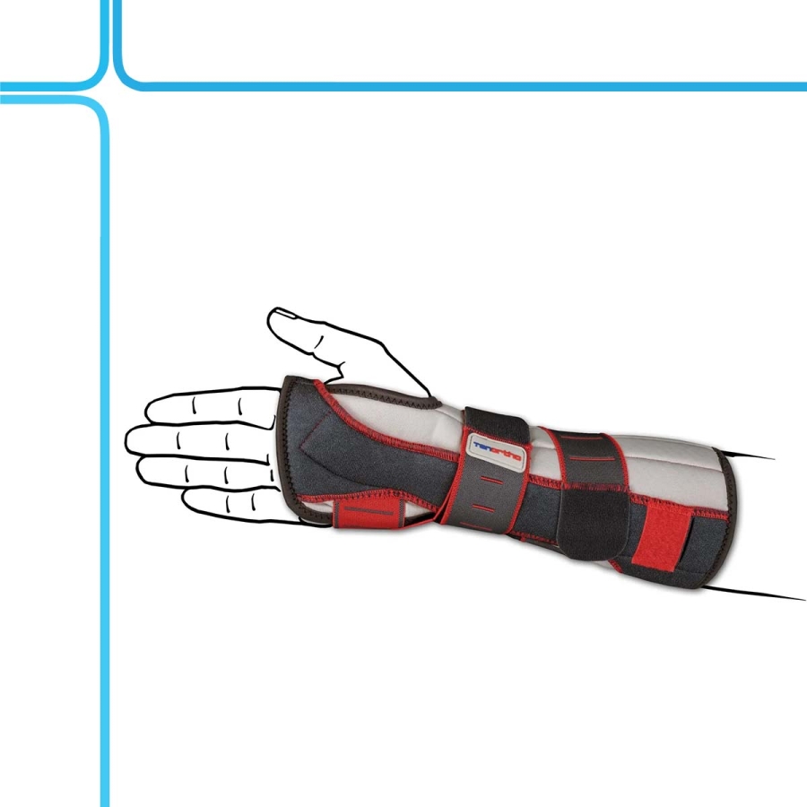 - Inserito sia sul lato dorsale sia su quello palmare, garantisce un elevato grado di immobilizzazione della flesso estensione del polso.