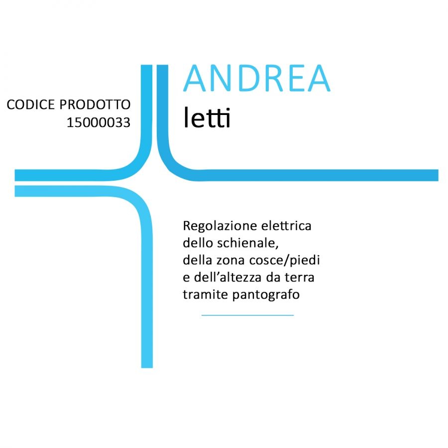 La rete ortopedica Andrea è una rete elettrica dotata di doghe in legno, che permette la regolazione dell’inclinazione dello schienale e della zona cosce/piedi e dell’altezza da terra, tramite meccanismo a pantografo. La rete Andrea non è fornita di una struttura di contenimento, ma è appositamente pensata per essere introdotta in una struttura esistente, tipicamente in ambito domiciliare. Per garantire la sicurezza dell’utilizzatore, il telecomando può essere azionato solo previa attivazione del dispositivo Nurse Lock, tramite apposita chiavetta, da parte del caregiver. La rete ortopedica viene fornita di serie comprensivo di un triangolo solleva malati conforme alla normativa EN 60601-1. Portata: 135 kg. Carico massimo di sicuro utilizzo: 180 kg.